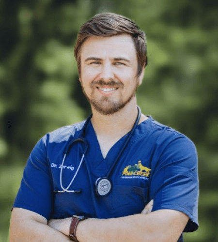 Dr. Zerwig was introduced to veterinary medicine after volunteering at a local shelter during college. “I’ve always loved animals, and my time volunteering at the shelter sparked a passion for veterinary medicine and shelter medicine,” said Dr. Zerwig. He brings expertise in preventive care, internal medicine, and client education—complementing Pine Creek’s mission of compassionate, individualized care.