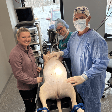 Unlike a traditional spay, which typically involves removing both the ovaries and the uterus through a larger abdominal incision, laparoscopic spays only remove the ovaries through two or three very small incisions. This method, called an ovariectomy, removes a female dog’s ovaries rather than the entire reproductive system.Rosy, a 7-year-old pitbull with a playful personality, was recently scheduled for a spay at Pine Creek Veterinary Associates. But instead of a traditional open surgery, Rosy underwent a laparoscopic spay, a minimally invasive technique designed to reduce pain, speed up recovery, and improve surgical outcomes.